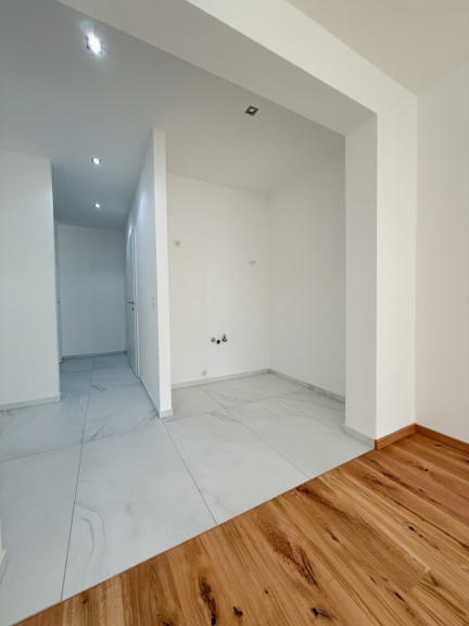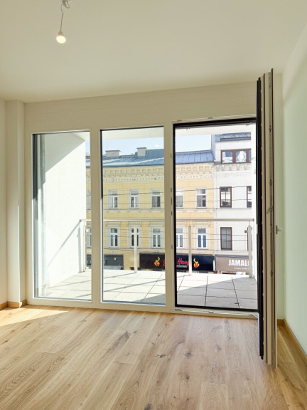 Das 1-Zimmer-Apartment ist effizient geschnitten und bietet ein angenehmes Raumgefühl mit klarer Struktur. Der handgehobelte Echtholzparkettboden verleiht dem Wohnraum eine warme, edle Atmosphäre. Große Fenster mit dreifach Verglasung und elektrischer Außenbeschattung sorgen für Ruhe, Energieeffizienz und hohen Wohnkomfort.