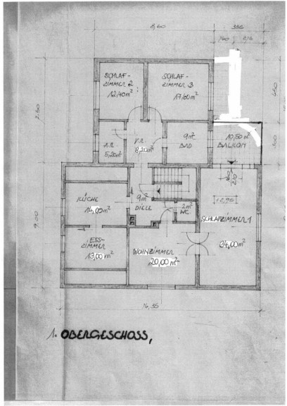 - OG: ca. 144 m2, Küche mit kleinem Esszimmer, Wohnzimmer, 3 Schlafzimmer, Bad mit Badewanne/Dusche u. WC, extra WC, Balkon mit herrlichem Gartenblick