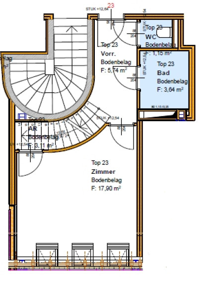Im neu ausgebauten Dachgeschoss befinden sich insgesamt 6 exklusive Wohnungen, davon 3 stilvolle Maisonettwohnungen. Besonders hervorzuheben ist die Top 23, die mit einer großzügigen Dachterrasse und einem atemberaubenden 360-Grad-Blick über Wien beeindruckt – ein einzigartiges Wohngefühl hoch über den Dächern der Stadt.