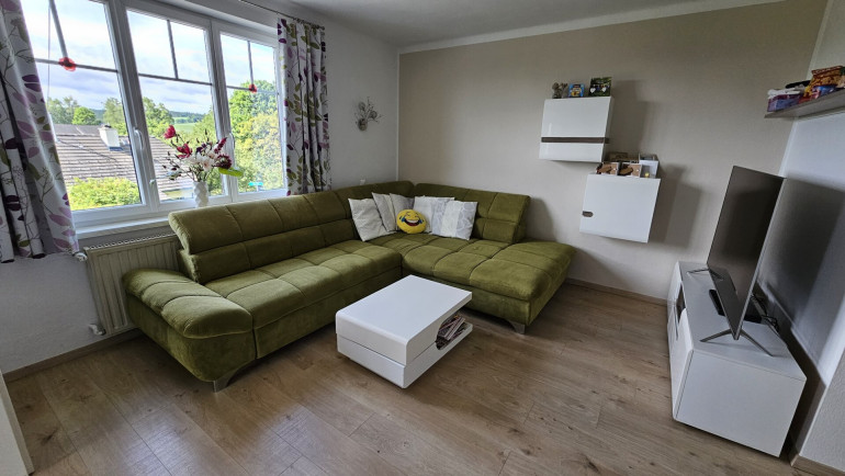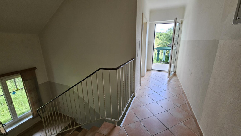 - Obergeschoss (ca, 95m2): kleine Wohnküche, offen zu Wohnzimmer, 3 Schlafzimmer, Duschbad mit Fenster, extra WC, zuzügl. Ostterrasse und großer Süd-Westbalkon mit traumhaftem Fernblick.