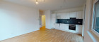 - Wohn-/Esszimmer und offenem Küchenbereich und Ausgang auf den Balkon