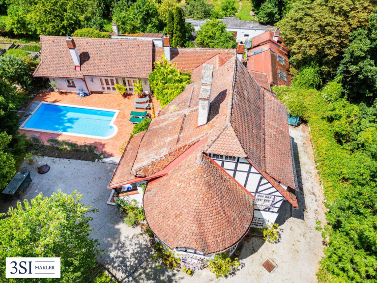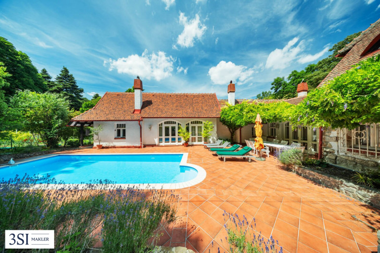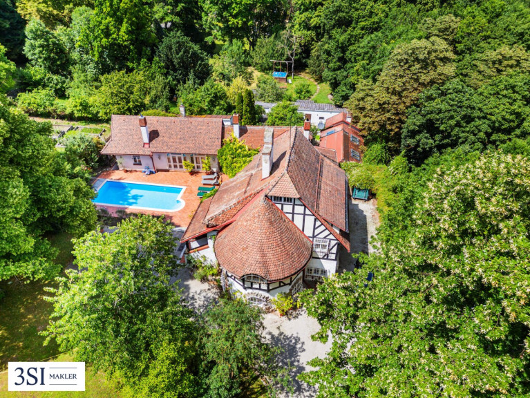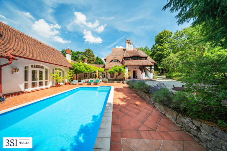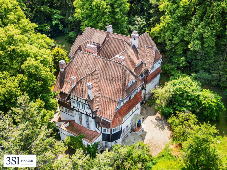 Auf dem über 11.500 m² großen Grundstück befinden sich derzeit ein Haupthaus – entworfen von Prof. Max Baron Ferstel – sowie eine Gärtnervilla mit Pool. Ergänzt wird das Anwesen durch einen separaten Baugrund, der zusätzliches Entwicklungspotenzial bietet.