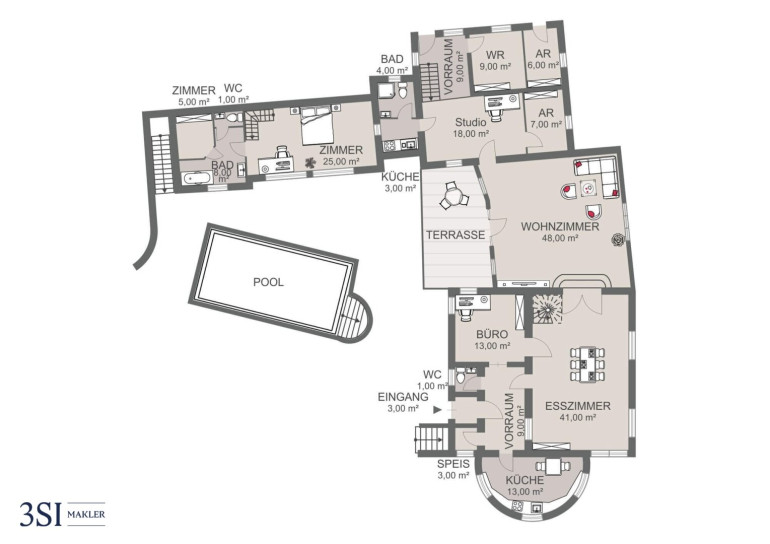 Der guten Ordnung halber halten wir fest, dass, sofern im Angebot nicht anders vermerkt, bei erfolgreichem Abschlussfall eine Provision anfällt, die den in der Immobilienmaklerverordnung BGBI. 262 und 297/1996 festgelegten Sätzen entspricht – das sind 3 % des Kaufpreises zzgl. 20 % USt. Diese Provisionspflicht besteht auch dann, wenn Sie die Ihnen überlassenen Informationen an Dritte weitergeben. Letztlich weisen wir darauf hin, dass wir als Doppelmakler tätig sind und ein familiäres/wirtschaftliches Naheverhältnis zwischen der 3SI Makler GmbH und der Verkäuferin besteht.