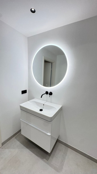 Hochwertige Materialien – Fischgrätparkett, großformatige Fliesen