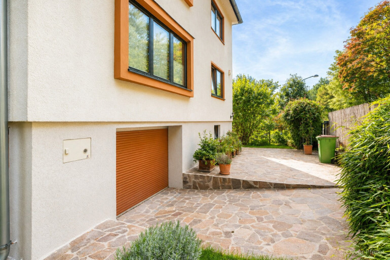 Durch die sanfte Hanglage vermittelt bereits das Erdgeschoss ein erhebendes Gefühl von Erhabenheit über das Bodenniveau. Diese Villa bietet zudem großzügigen Raum für zwei völlig separat lebende Familien, wodurch sie ideale Voraussetzungen für ein harmonisches Miteinander schafft.