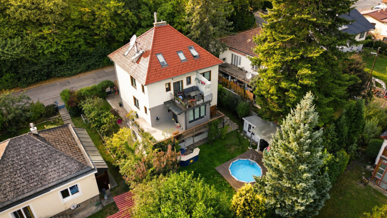 in dieser naturparknahen Gegend im 14. Wiener Bezirk befindet sich an einer kaum befahrenen Adresse eine großzügige, liebevoll renovierte Familienvilla mit Außenpool und Sauna.