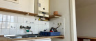 Parkett, Fliesen, Gas, Etagenheizung, Wohnküche / offene Küche, Badewanne, Kabel/Satelliten-TV
