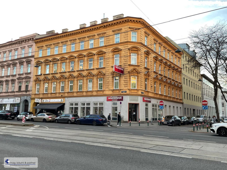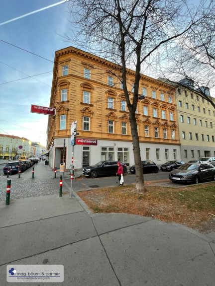 Das mit Baubewilligung vom 27.02.1887 errichtete Gründerzeit Eckzinshaus verfügt über eine schöne Originalfassade und einen ausbaubaren Rohdachboden sehr guter Verkehrslage.