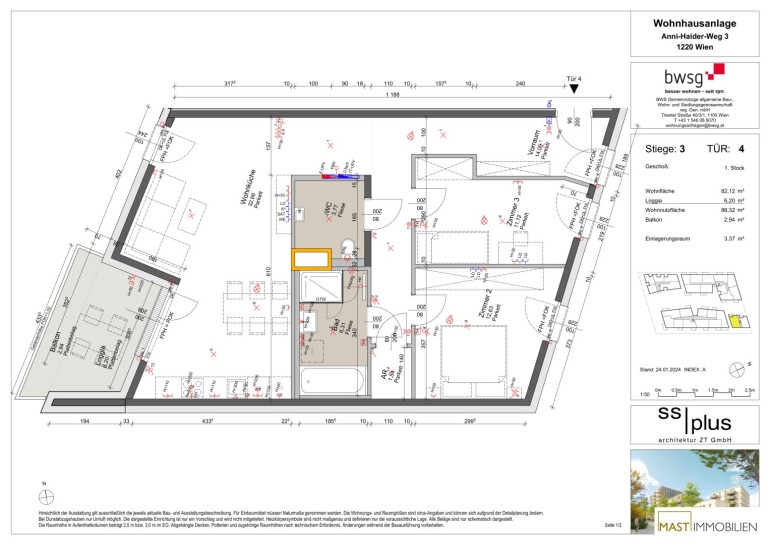 Die Wohnung befindet sich im 1. Obergeschoss und verfügt über 82,12 m² Wohnfläche + eine 9,14 m² große Freifläche.