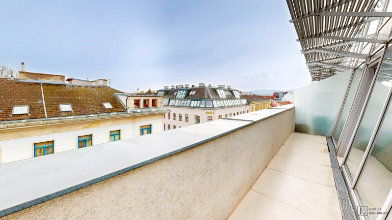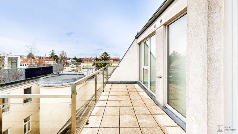 Mit einer Wohnfläche von rund 121 m² und zwei sonnigen Terrassen (insgesamt 28,6 m²) bietet sie ein großzügiges Raumgefühl und herrliche Ausblicke über die Stadt – perfekt für entspannte Stunden im Freien oder eine kleine grüne Oase mitten in Wien.