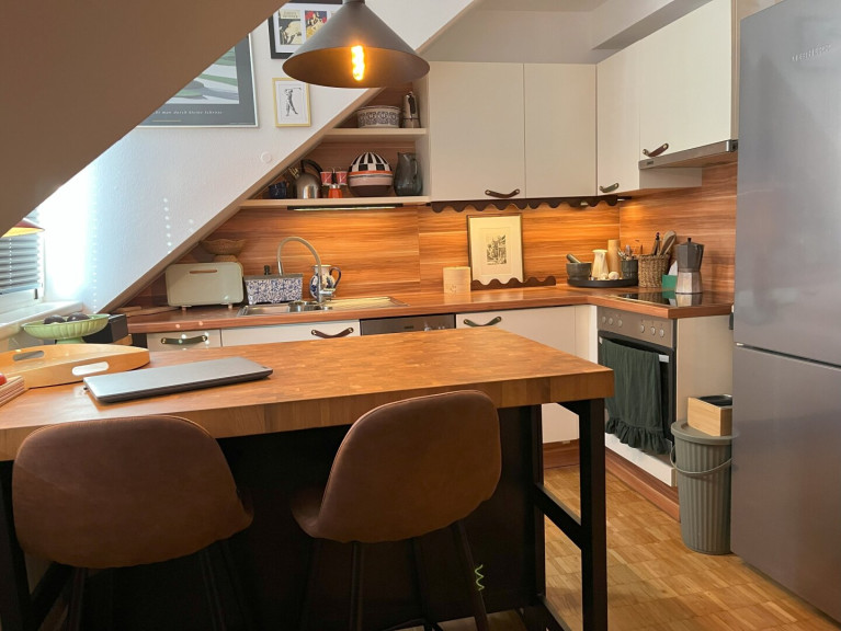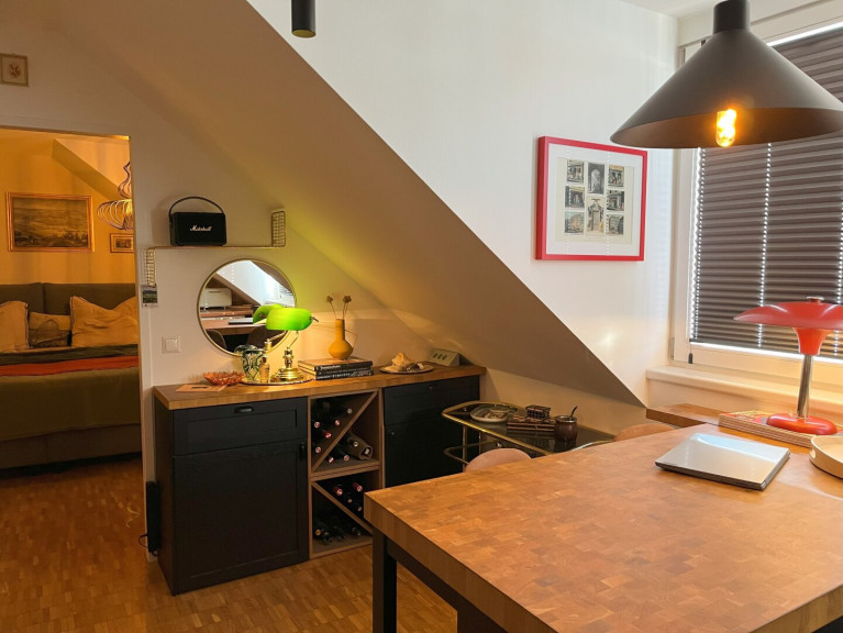 Die liebevoll integrierten Holzelemente verleihen der Wohnung eine warme und wohnliche Atmosphäre. Dank der Innenstadtlage sind Einkaufsmöglichkeiten, Restaurants, Cafés und öffentliche Verkehrsmittel in wenigen Gehminuten erreichbar.