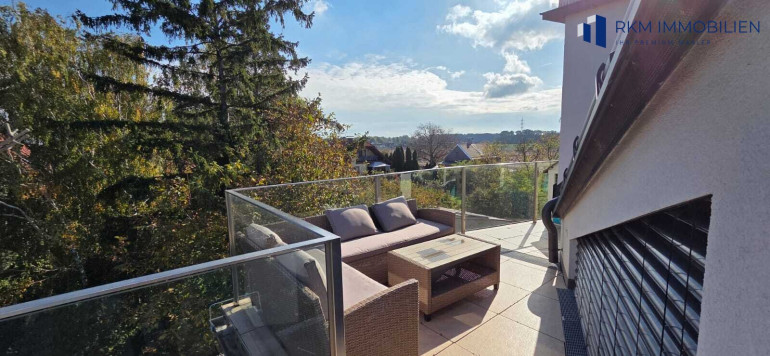 Draußen genießen: Balkon beim Wohnen + Terrasse im DG mit Fernblick.
