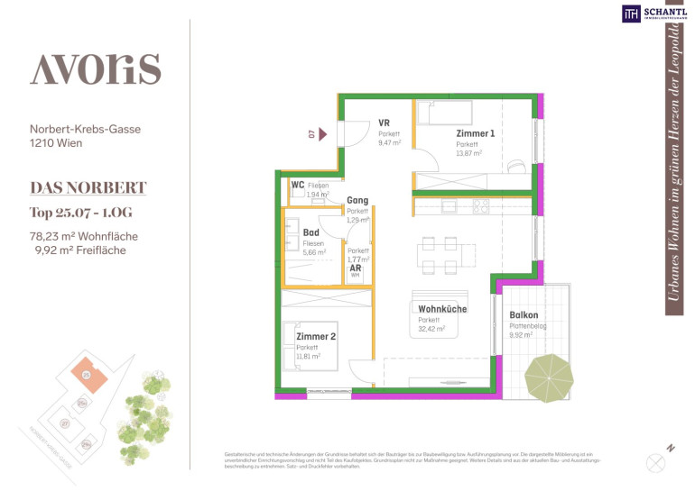 Wohnfläche: ca. 78,23m² + Balkon: ca. 9,92m² + Kellerabteil