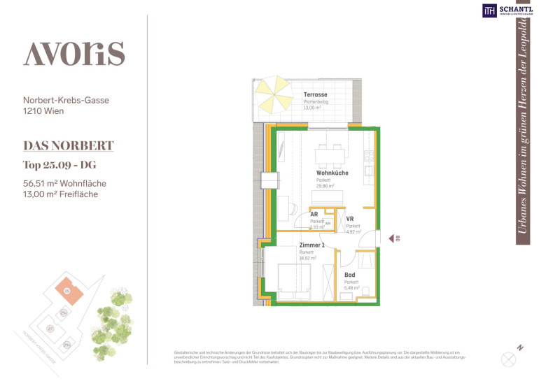 Wohnfläche: ca. 56,51m² + Terrasse: ca. 13,00 m² + Kellerabteil