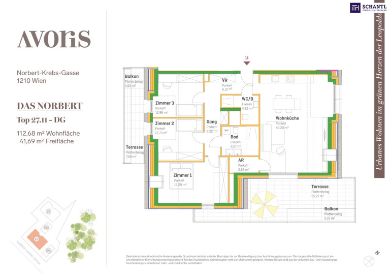 Wohnfläche: ca. 112,68m² + 2 Terrassen: ca. 32,92m² + 2 Balkone: ca. 8,77m² + Kellerabteil