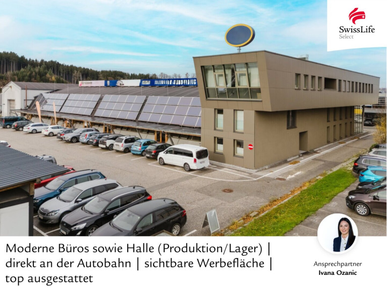 Zur Vermietung stehen moderne Büroflächen sowie eine variabel teilbare Lager-/Produktionshalle in erstklassiger Verkehrslage direkt an der Autobahnabfahrt Vorchdorf.