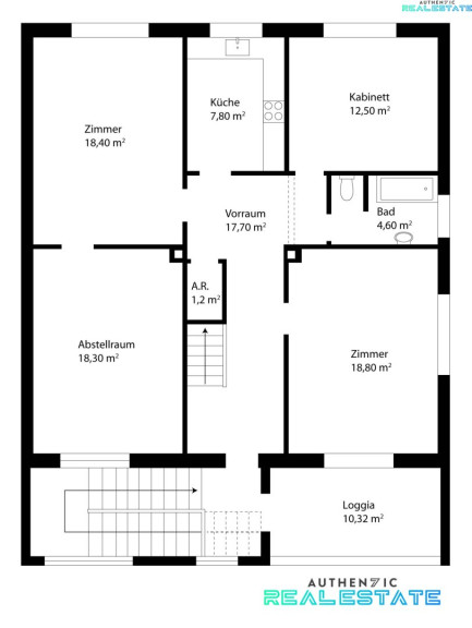 Obergeschoß: ca. 100 m² Wohnfläche plus 10 m² Loggia