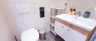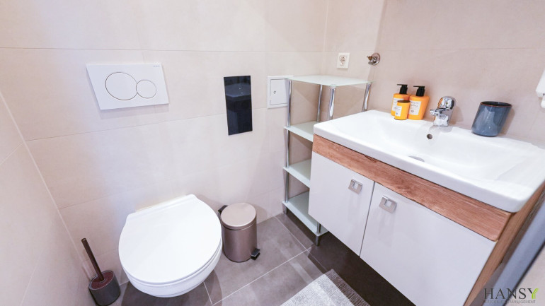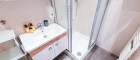 Badezimmer: Modernes Bad mit Dusche, WC und Waschbecken – kompakt und funktional.