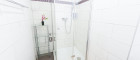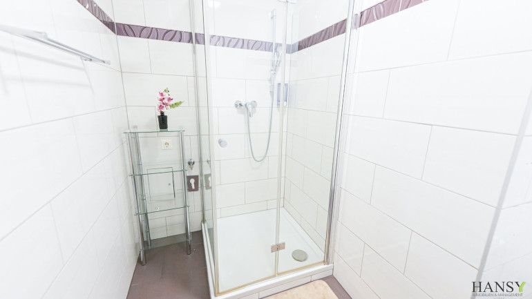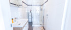 Badezimmer: Modernes Bad mit Dusche, WC und Waschbecken – kompakt und funktional.