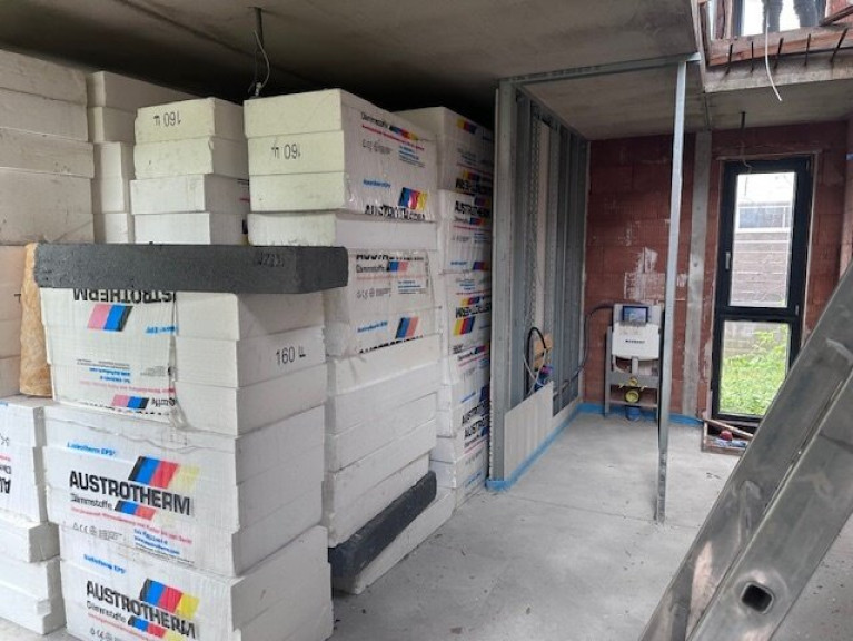 • Fußbodenheizung verlegt, Estrich vorhanden