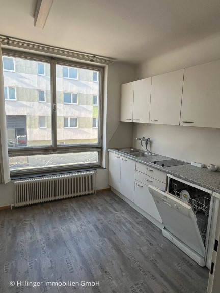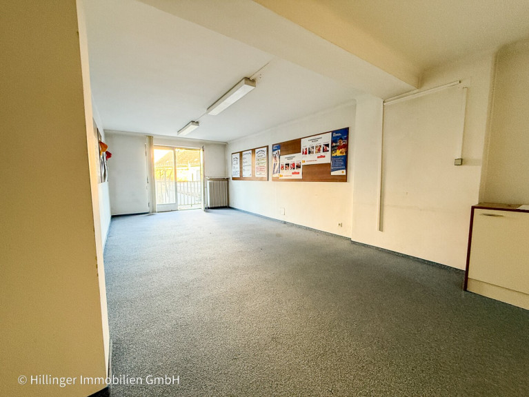 Derzeit in zwei große Zimmer, separate Küche, WC, Bad und Abstellraum unterteilt, bisher als Büro genutzt.