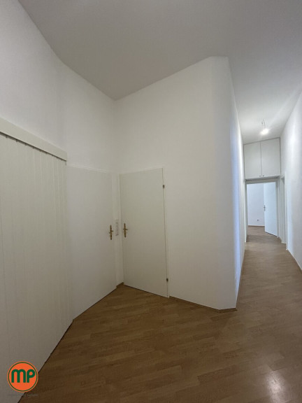 Beim Betreten dieser charmanten Altbauwohnung gelangen Sie zunächst in den großzügigen Vorraum, der als einladender Empfangsbereich dient und den Zugang zu nahezu allen Wohnräumen ermöglicht. Ein praktischer Abstellraum mit integrierter Garderobe bietet Platz für Schuhe, Jacken und weitere Alltagsgegenstände – ideal, um den Wohnbereich ordentlich und aufgeräumt zu halten.