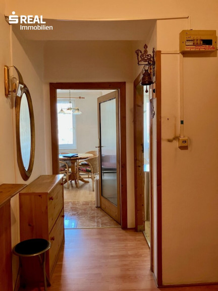 Zentraler Vorraum von dem aus das Wohnzimmer, die Küche mit Essbereich, das Bad und WC separat begehbar sind. Vom Wohnzimmer aus gelangen Sie in ein Schlafzimmer.