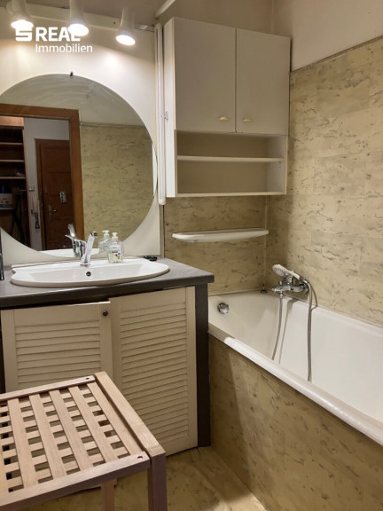 Das Badezimmer ist mit einer Badewanne und einem Waschmaschinenanschluss ausgestattet. Ein separates Kellerabteil ist ebenfalls Bestandteil dieser Eigentumswohnung.