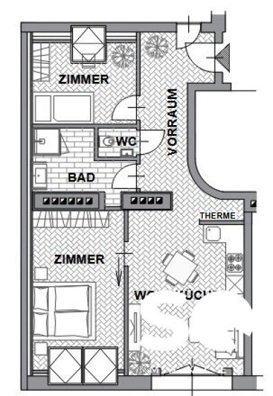 Wohnräume/Küche/Esszimmer: Französisches Fischgrät