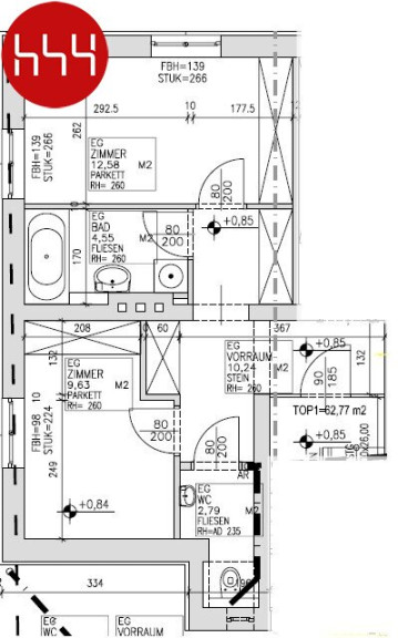 Einbauküche, Badewanne, Dusche, Parkplatz