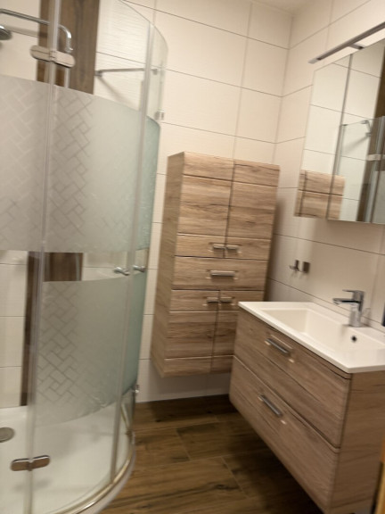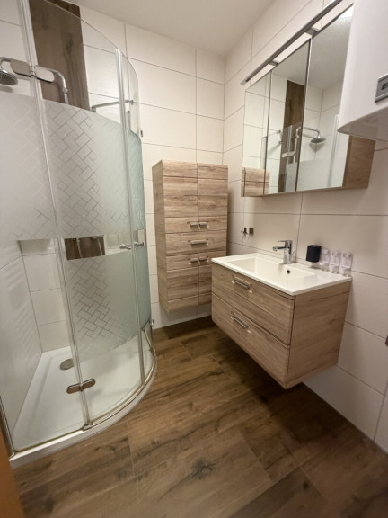 - Modernes Badezimmer: Das Badezimmer ist modern gestaltet und mit einer Dusche ausgestattet.