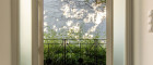 Der Wohnbereich und das Elternschlafzimmer sind gartenseitig ausgerichtet – Richtung dem Schreiberbach, der direkt vom Grundstück aus zugänglich ist. Die Kinderzimmer liegen südseitig und öffnen sich zum etwa 380 m² großen, japanisch anmutendem, uneinsehbaren Vorgarten – ein idealer Ort zum Spielen und Entspannen.
