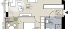 Die Wohnung besteht aus 2 Zimmern, mit knapp 46m² Wohnfläche sowie einer eigenen Loggia mit ca. 6m² undgliedert sich in folgende, funktionelle Raumaufteilung: