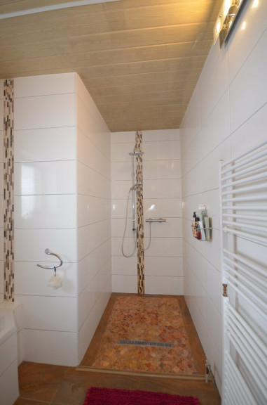 Für Heizung und Warmwasser stehen ein Holzvergaserofen und eine Luftwärmepumpe zu Verfügung! (Bei Bedarf könnte sogar auf eine Öl-Zentralheizung zurück gegriffen werden.)