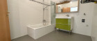 Die Wohnung gliedert sich in ein großzügiges, helles und freundliches Wohn-/Esszimmer mit offener Küchenzeile, ein Schlafzimmer und ein Badezimmer mit Duschbadewanne inklusive Waschmaschinenanschluss. Das WC befindet sich separat vom Badezimmer. Der Wohn- und Essbereich ist der ideale Treffpunkt für kulinarische Abenteuer und gesellige Abende mit Freunden und Familie.