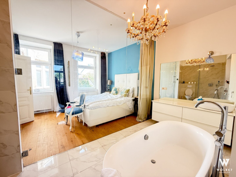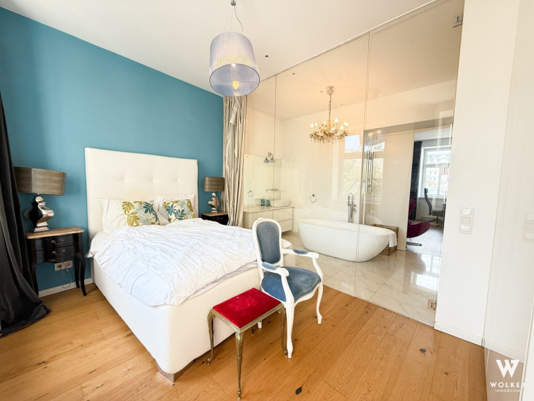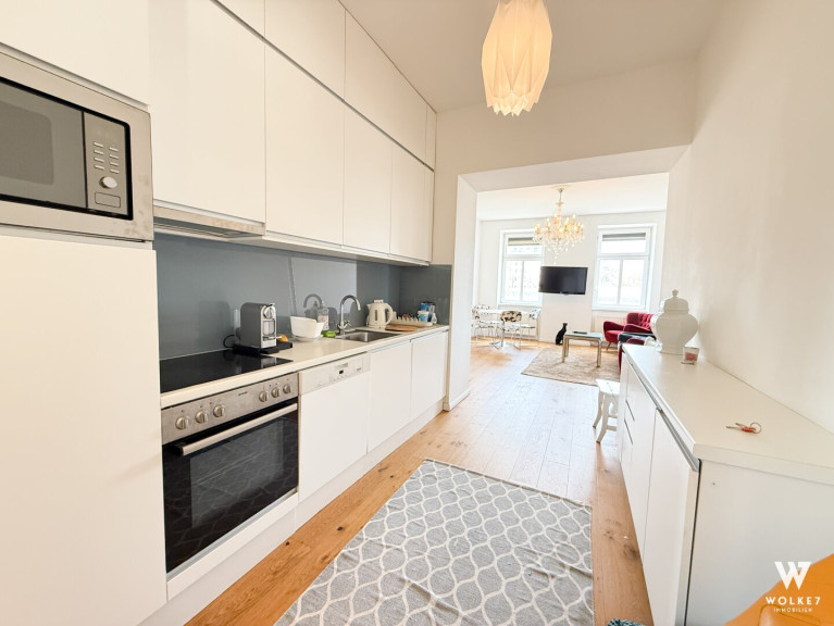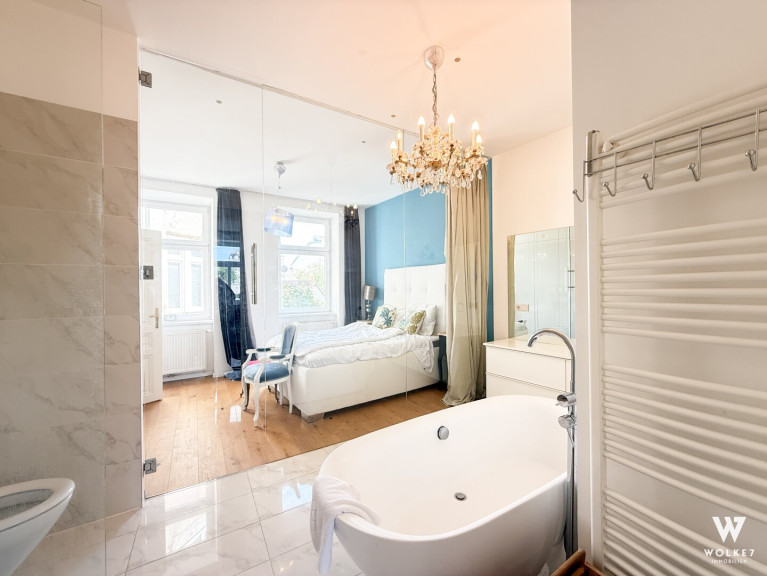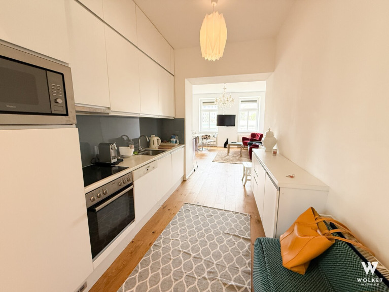 Die Wohnung besticht durch klassische Altbauelemente wie großzügige Raumhöhen und elegante Flügeltüren, kombiniert mit modernem Interieurdesign und hochwertigen Materialien. Ein stilvoller Rückzugsort mit urbanem Touch – selten in dieser Form zu finden.