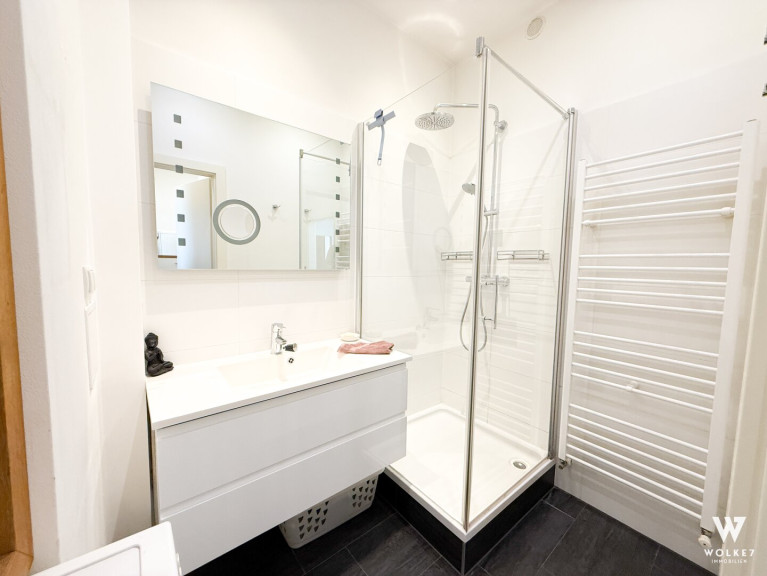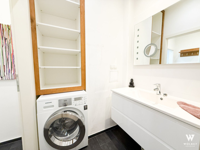 Modernes saniertes Badezimmer mit hochwertiger Dusche & Waschmaschine (Samsung)