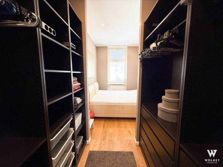 Schlafzimmer mit großzügigem, begehbarem Einbauschrank