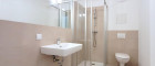 - Bad mit Dusche und WC , modern mit großen Fliesen und schönen Armaturen, Waschmaschinenanschluss