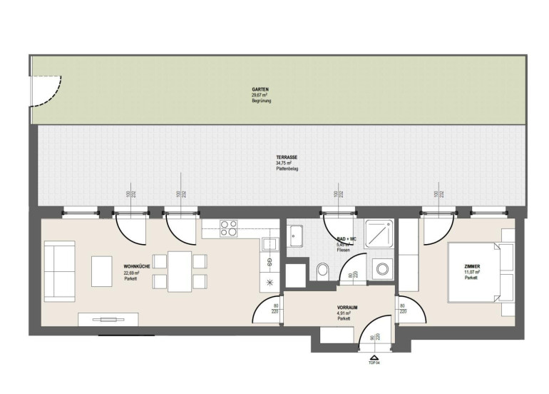 Ein Kellerabteil gehört auch dazu. Selbstverständlich gibt es Kinderwagen- und Fahrradräume und ein Tiefgaragenplatz kann nach Verfügbarkeit auch dazu gekauft werden.