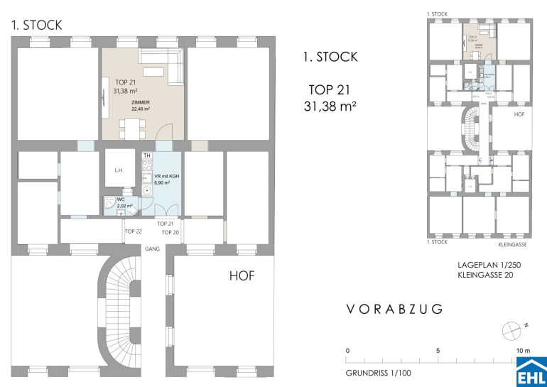 Besonders hervorzuheben ist die außergewöhnlich ruhige Wohnatmosphäre, von der in dieser Gasse nicht nur die hofseitigen Räume profitieren.