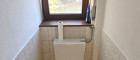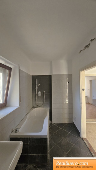 - Badezimmer mit Badewanne, Handwaschbecken, Warmwasserboiler, Fenster
