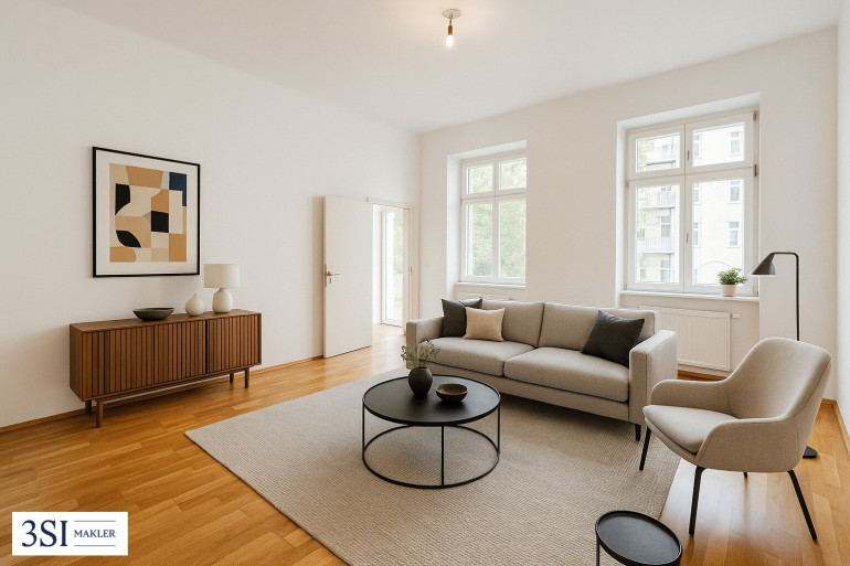 Bezugsfertige knapp 82 m² große 3-Zimmer Altbauwohnung in gepflegter Altbauliegenschaft gleich bei der U3-Station Kardinal-Nagl-Platz. Diese ist hofseitig Richtung Süden ausgerichtet und teilt sich wie folgt auf:
