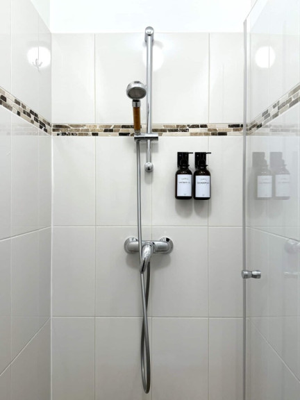 • Zwei separate Schlafzimmer mit Doppelbetten, eines davon mit eigenem Bad (Dusche) und integrierter Pantryküche