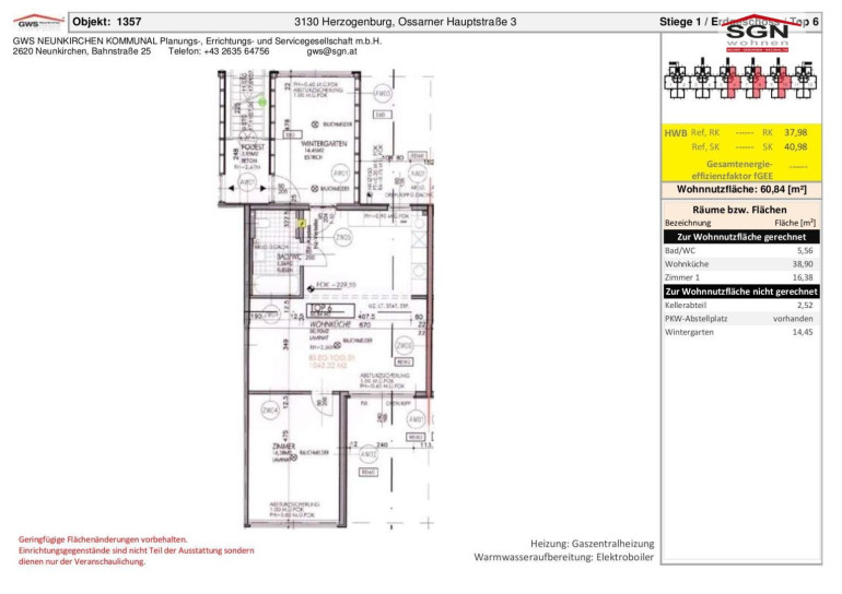 | Heizwärmebedarf: | B 37,98 kWh/m²a |