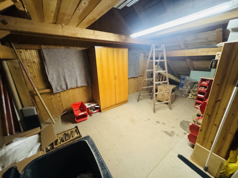 Der Dachboden bietet zusätzlichen Stauraum oder kann als Hobby- oder Kreativraum genutzt werden.