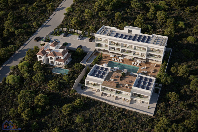 Die Konstruktion des ENIKO MARE basiert auf hochwertigem Stahlbeton und wurde nach den Eurocode-Erdbeben-Designnormen entworfen. Die Außenwände sind mit einem thermischen Isolationssystem der Klasse „A“ ausgeführt, das aus 20 bis 25 cm starkem Mauerwerk und 5 bis 8 cm Polystyrol besteht, um höchste Energieeffizienz zu gewährleisten. Bei der Ausstattung werden nur hochwertige Materialien verwendet: Im Innenbereich können Kunden zwischen importierten Keramikfliesen oder hochwertigem Laminatparkett wählen. Die Fenster und Außentüren bestehen aus einer verbesserten thermischen Aluminiumserie mit wärmeisolierendem Doppelglas. Jedes Apartment verfügt über ein maßgeschneidertes Küchendesign mit einer 40 mm starken Technogranit-Arbeitsplatte, und die Badezimmer sind mit Marken-Sanitärarmaturen europäischer Qualität ausgestattet.