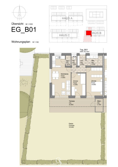 Die hier exklusiv angebotene Garten-Terrassenwohnung befindet sich im Erdgeschoß des B-Hauses.