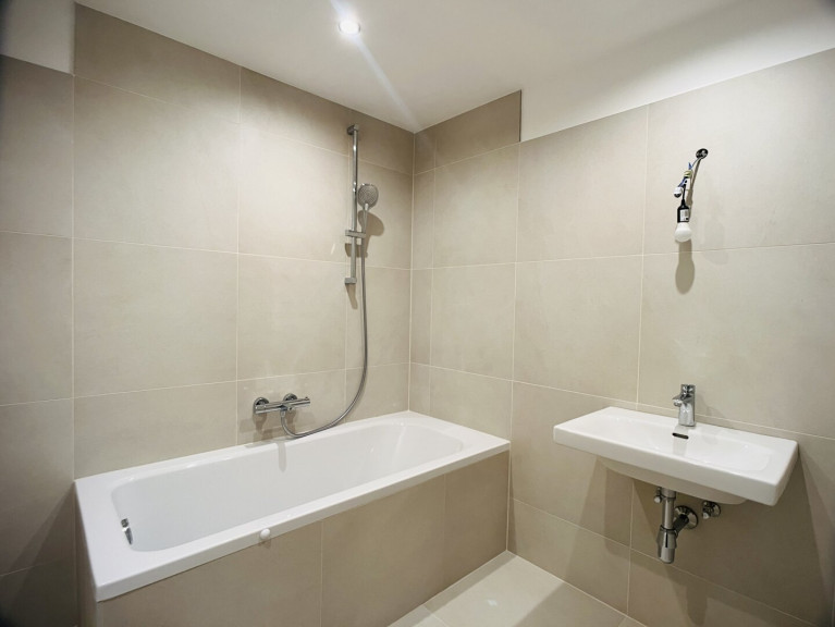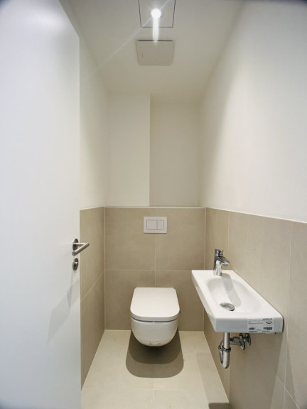 In sämtlichen Wohnräumen, wurde die Wohnung mit Parkettböden ausgestattet. Die Badezimmer wurde mit hellem und großflächigen Feinsteinzeug sowie mit geschmackvollen und hochwertigen Armaturen ausgestattet.