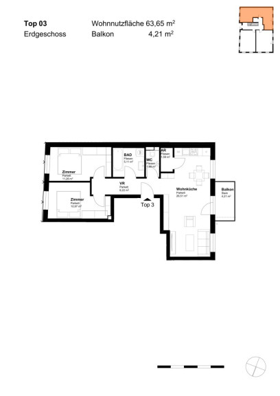 Die hier angebotene Wohnung Top 3, befindet sich im erhöhten Erdgeschoss und ist hofseitig ausgerichtet. Man hat somit einen traumhaften Blick ins Grüne sowie auf den Hagenbach.